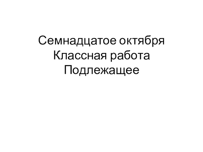 Слайд 1Семнадцатое октября Классная работа Подлежащее