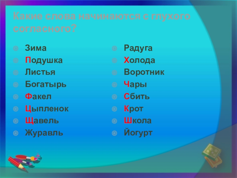 глухие согласные [Х], [Х,], [Ц], [Ч,], [Щ,].