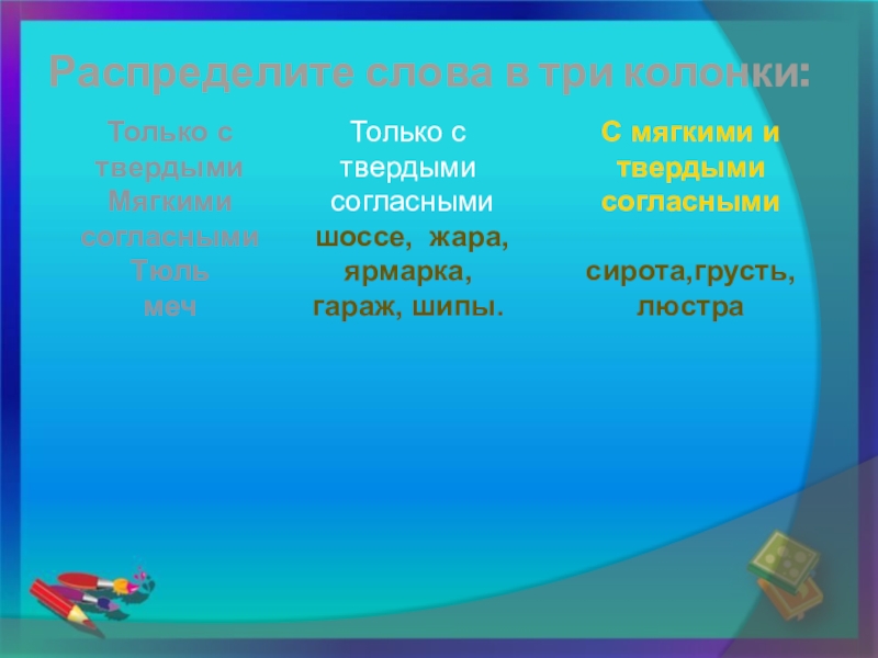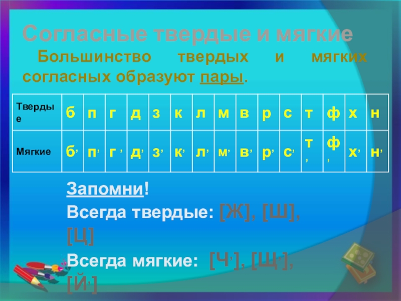 Всегда мягкие: [Ч,], [Щ,], [Й,]
