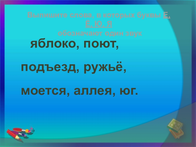 Выпишите слова, в которых буквы Е, Ё, Ю, Я
