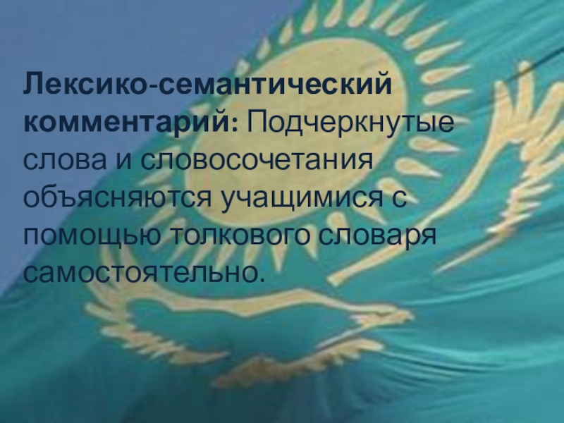 Слайд 5Лексико-семантический комментарий: Подчеркнутые слова и словосочетания объясняются учащимися с помощью толкового