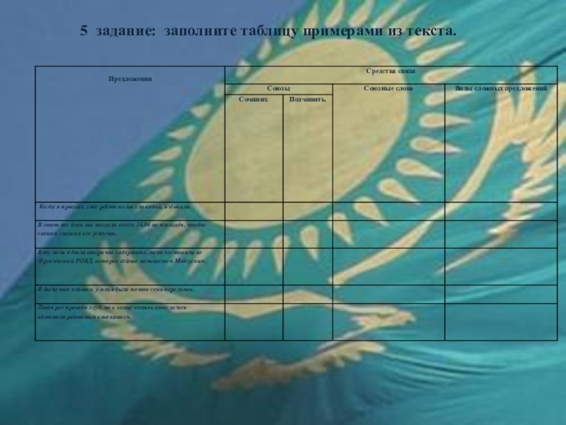 Слайд 85 задание: заполните таблицу примерами из текста.