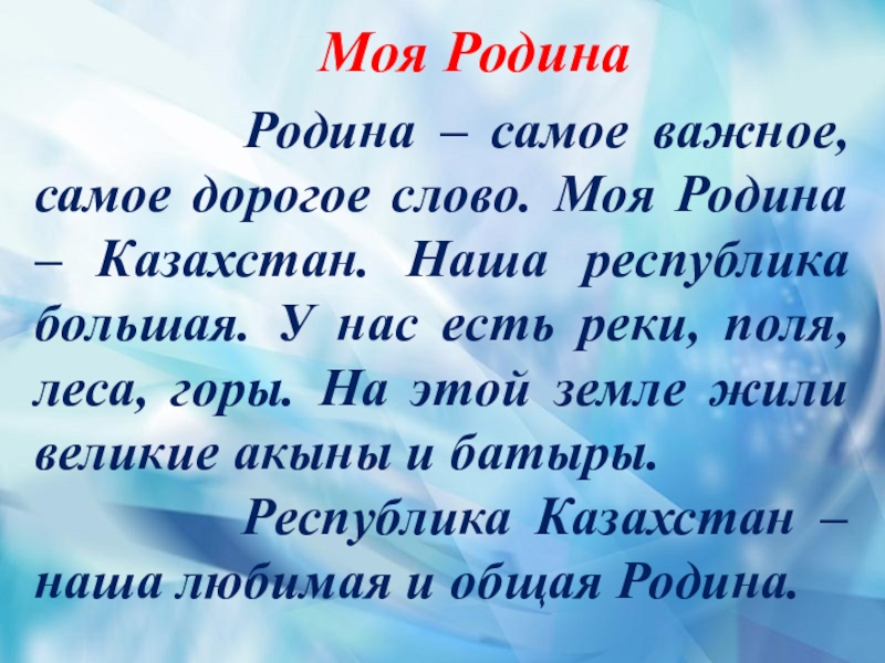 Моя Родина – Казахстан.