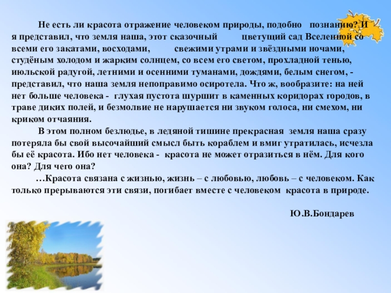 Знаешь ли ты, как чудесна, как прекрасна природа родного края, природа земли?