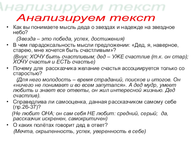 Слайд 16Как вы понимаете мысль деда о звездах и надежде на звездное