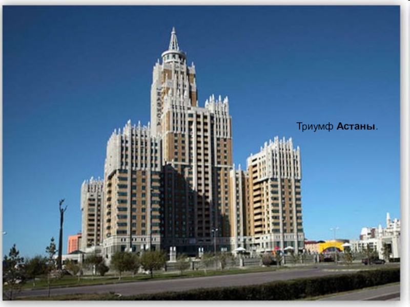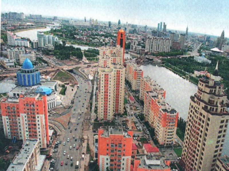 Столица Казахстана-Астана. Это красивый город с широкими улицами. Дома высокие.