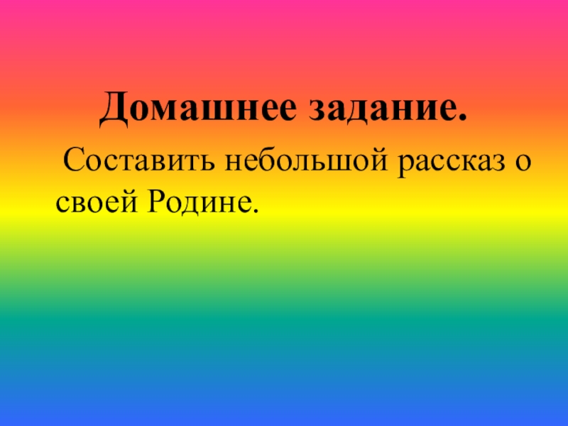 Домашнее задание. 	Составить небольшой рассказ о своей Родине.