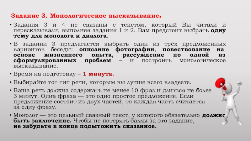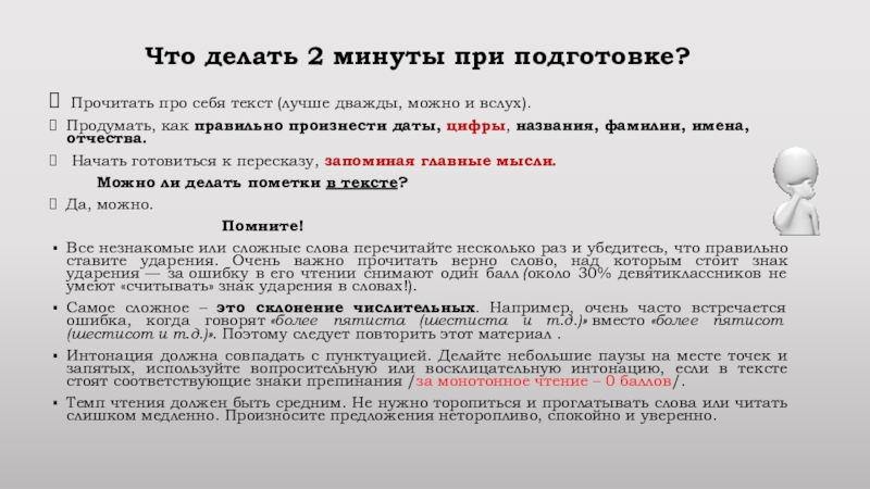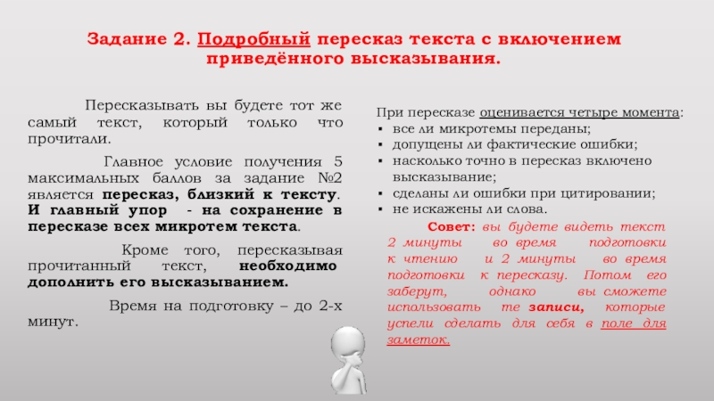 Совет: вы будете видеть текст 2 минуты во время подготовки к чтению и 2 минуты во время подготовки к пересказу. Потом его заберут, однако вы сможете использовать те записи, которые успели сделать для себя в поле для заметок.