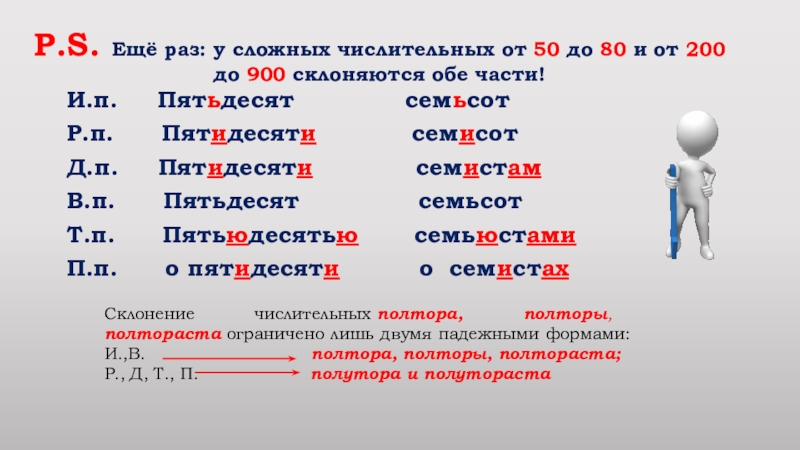 Склонение числительных полтора, полторы, полтораста ограничено лишь двумя падежными формами: И.,В. полтора, полторы, полтораста;