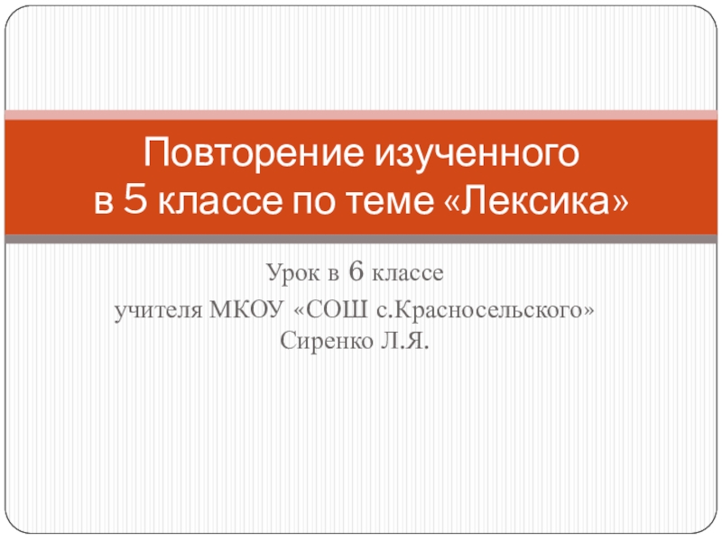 5 классе по теме «Лексика»