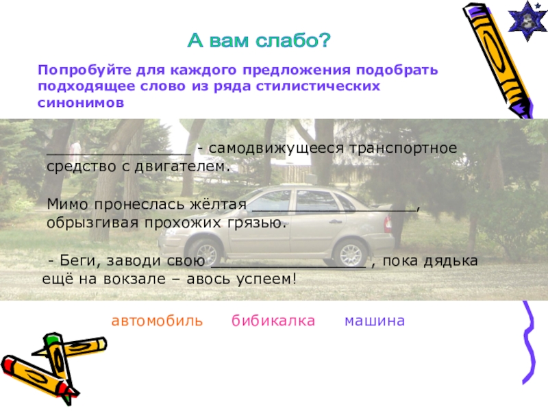 _______________ - самодвижущееся транспортное средство с двигателем.