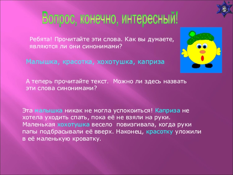 А теперь прочитайте текст. Можно ли здесь назвать эти слова синонимами?