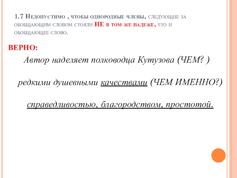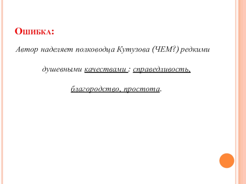 Автор наделяет полководца Кутузова (ЧЕМ? ) редкими душевными качествами (ЧЕМ ИМЕННО?) справедливостью, благородством, простотой.