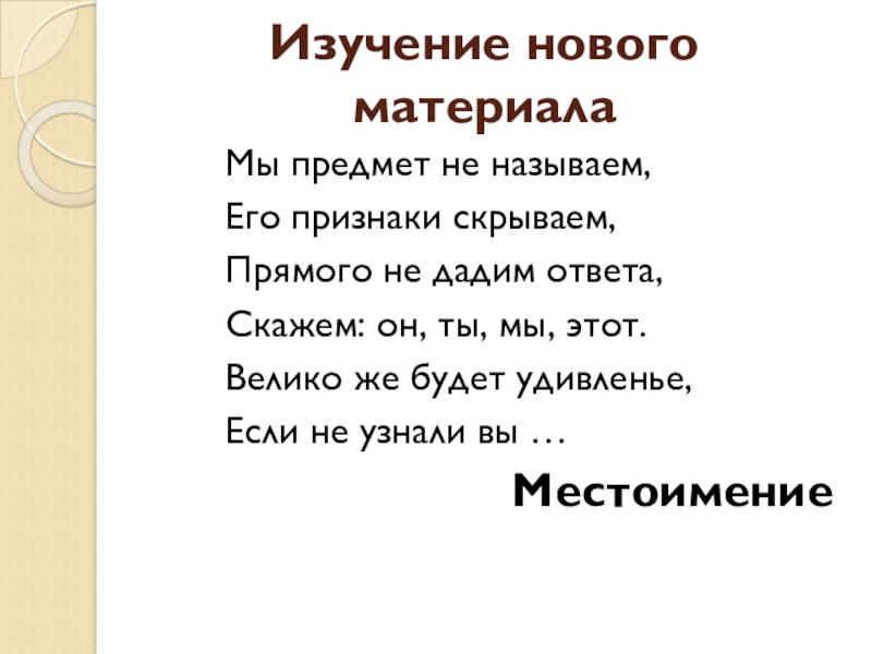 познакомиться с основными признаками местоимения как части речи;