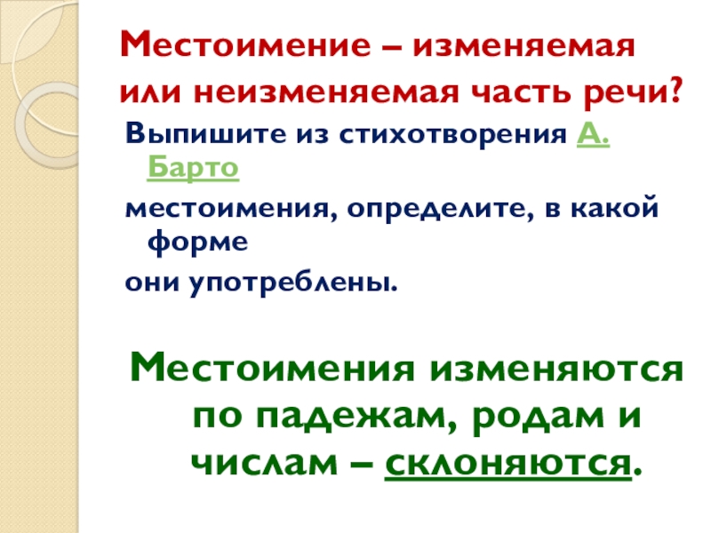 Слайд 16Местоимение – изменяемая или неизменяемая часть речи?