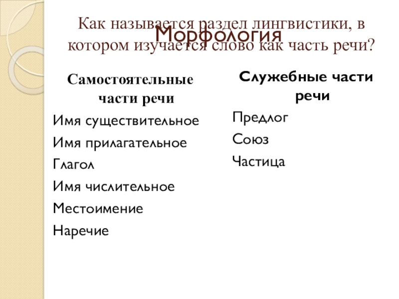 Слайд 4Как называется раздел лингвистики, в котором изучается слово как часть речи?