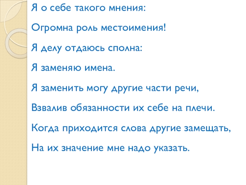 Местоимение – это самостоятельная часть речи, которая указывает на признак, предмет