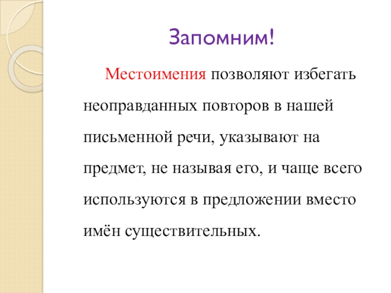 Слайд 15 Местоимения позволяют избегать неоправданных повторов в нашей письменной