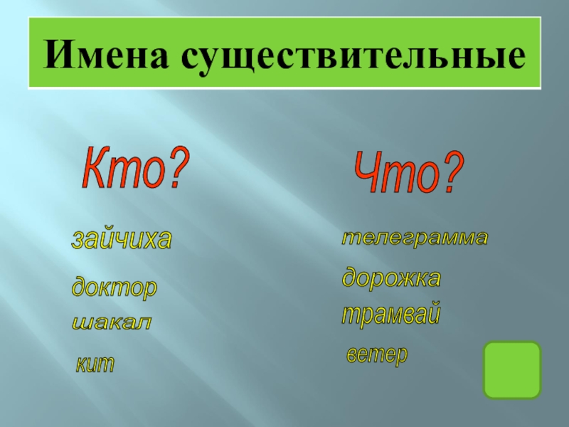 Кто? Что? зайчиха шакал доктор кит трамвай дорожка телеграмма ветер