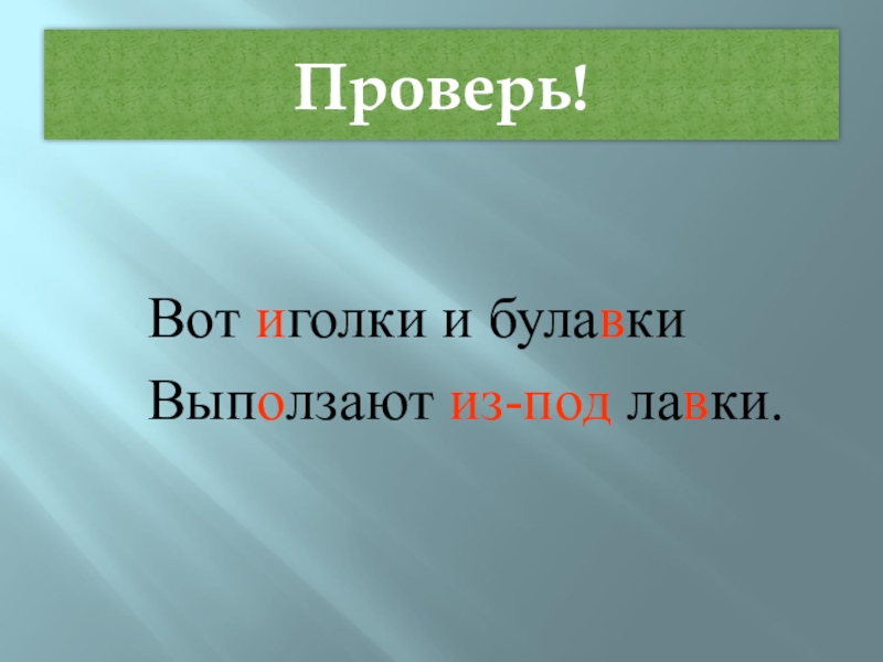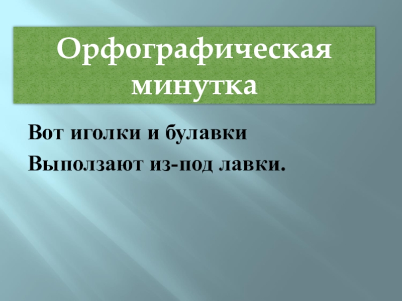 Орфографическая минуткаВот иголки и булавкиВыползают из-под лавки.