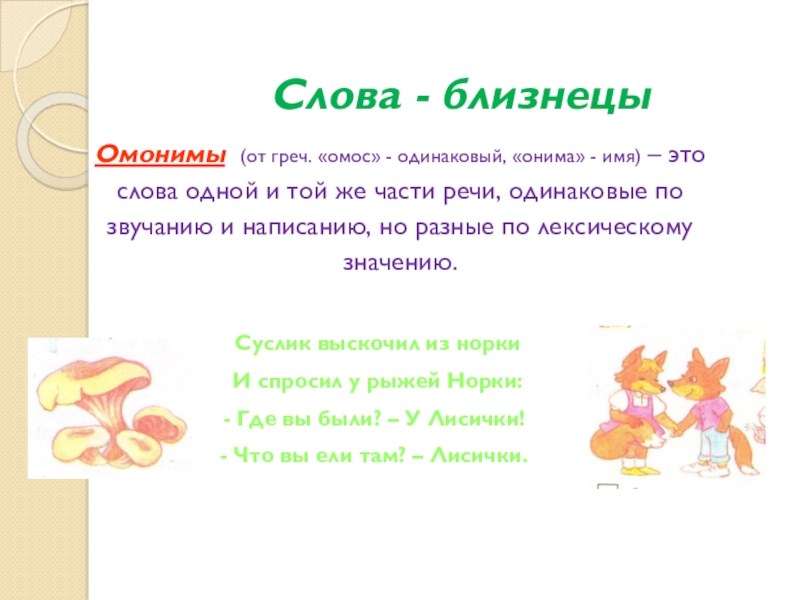 Омонимы (от греч. «омос» - одинаковый, «онима» - имя) – это