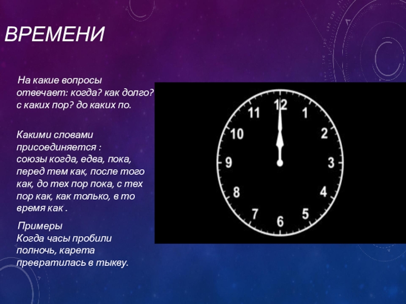 Какими словами присоединяется : союзы когда, едва, пока, перед тем как, после того как, до тех пор пока, с тех пор как, как только, в то время как .