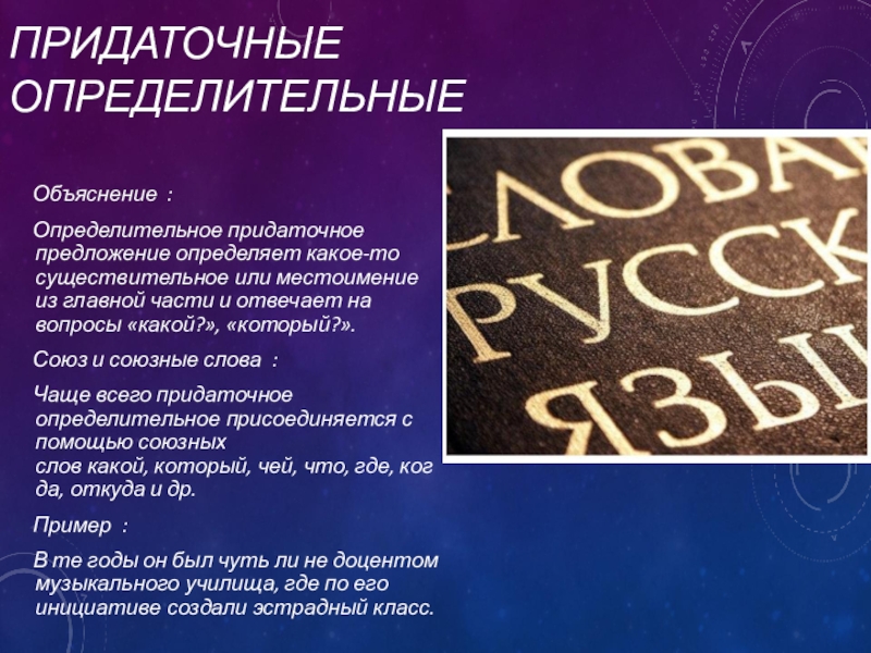определяет какое-то существительное или местоимение из главной части и отвечает на вопросы «какой?», «который?».