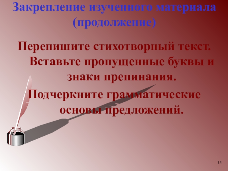 Перепишите стихотворный текст. Вставьте пропущенные буквы и знаки