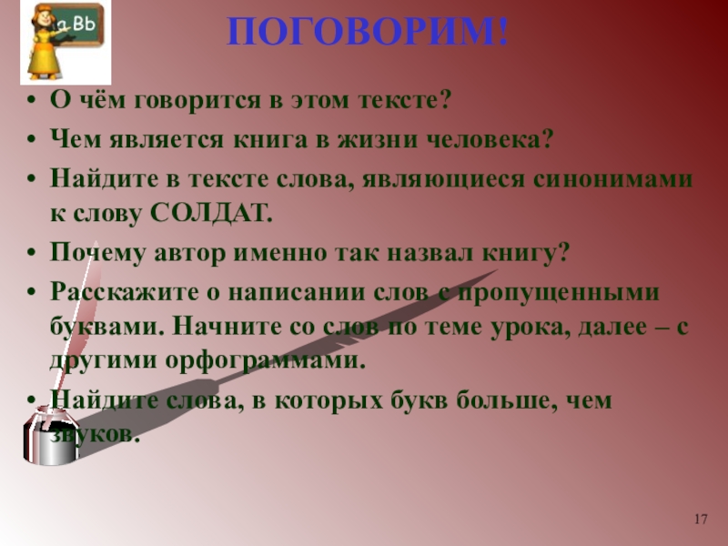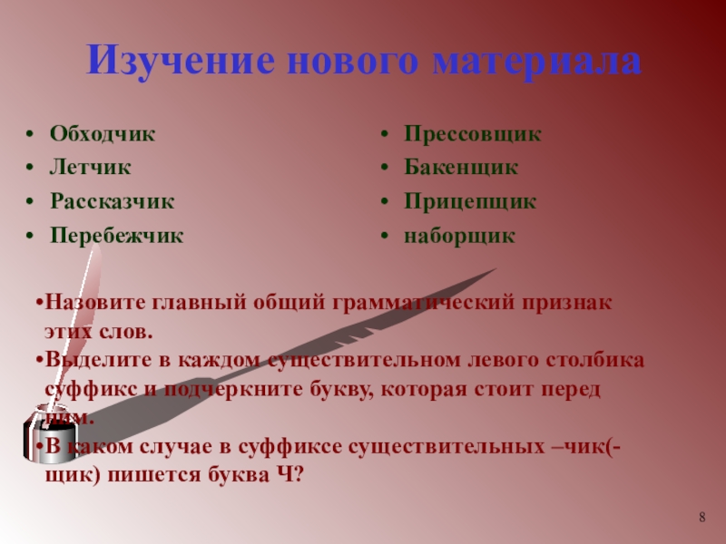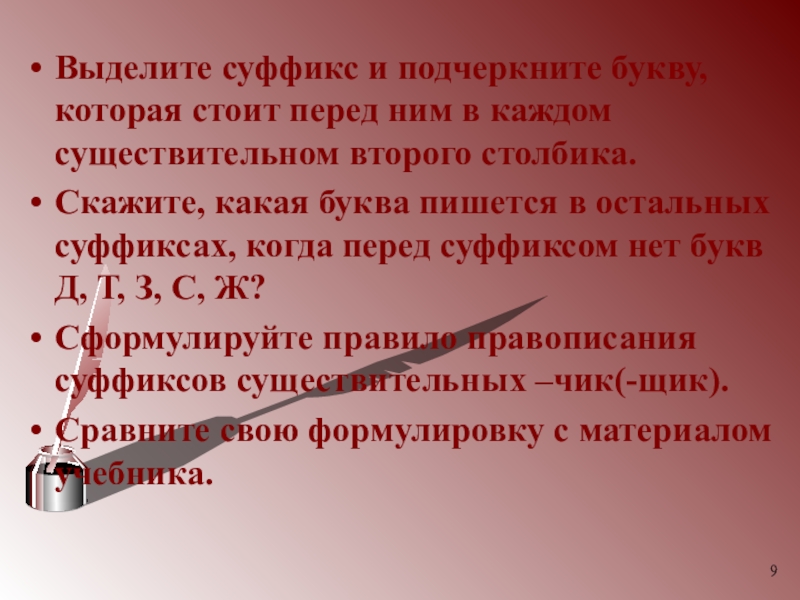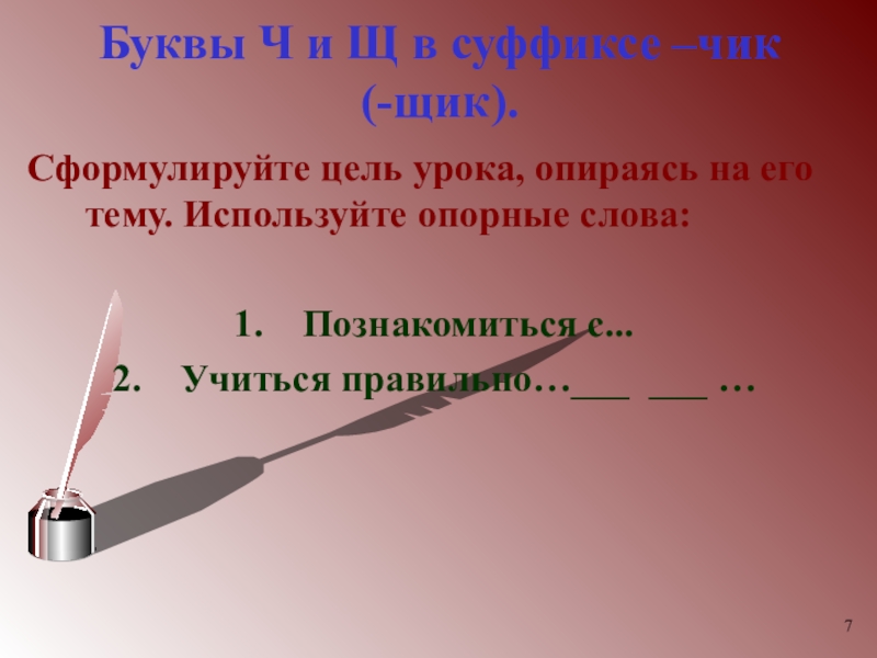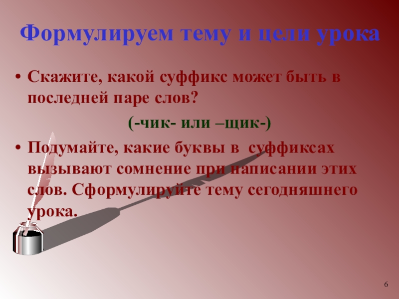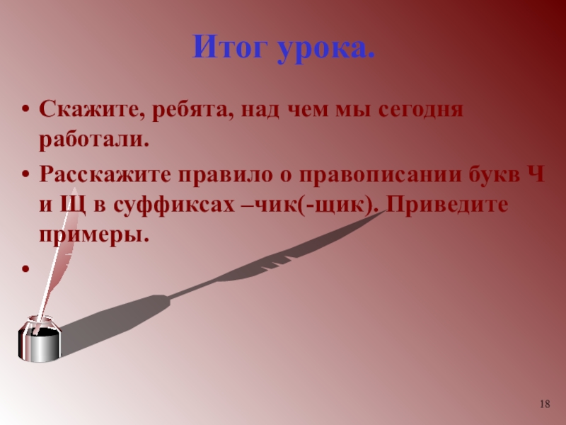 Урок по теме «Буквы Ч и Щ в суффиксах –чик(-щик)».