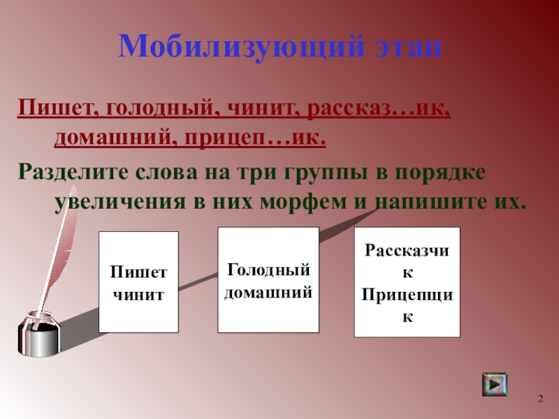 Пишет, голодный, чинит, рассказ…ик, домашний, прицеп…ик.