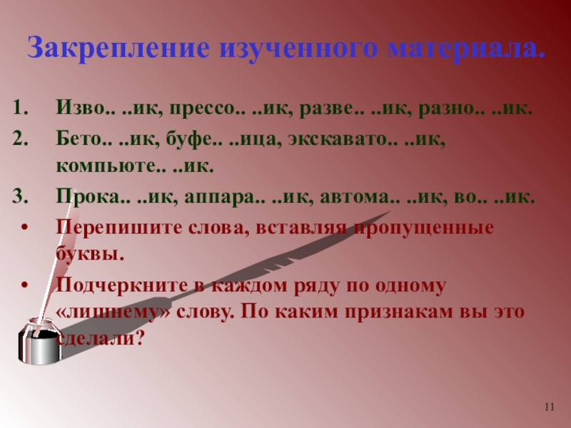 буфе.. ..ица, экскавато.. ..ик, компьюте.. ..ик.