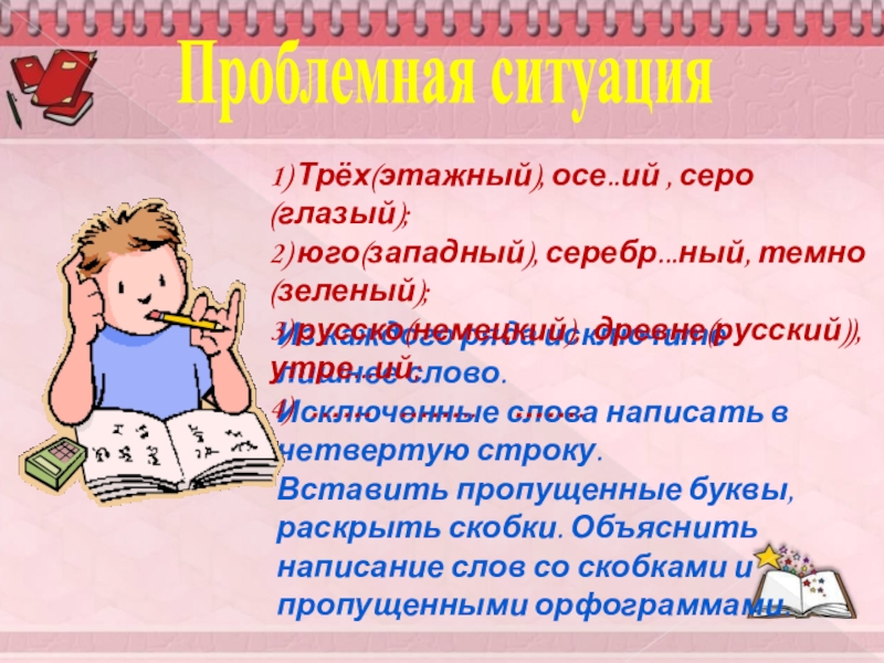 3) русско(немецкий), древне(русский)), утре...ий;