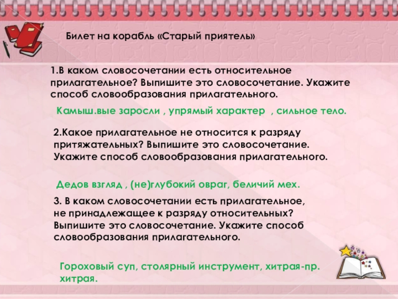 3. В каком словосочетании есть прилагательное,не принадлежащее к разряду относительных? Выпишите это словосочетание. Укажите способ словообразования прилагательного.