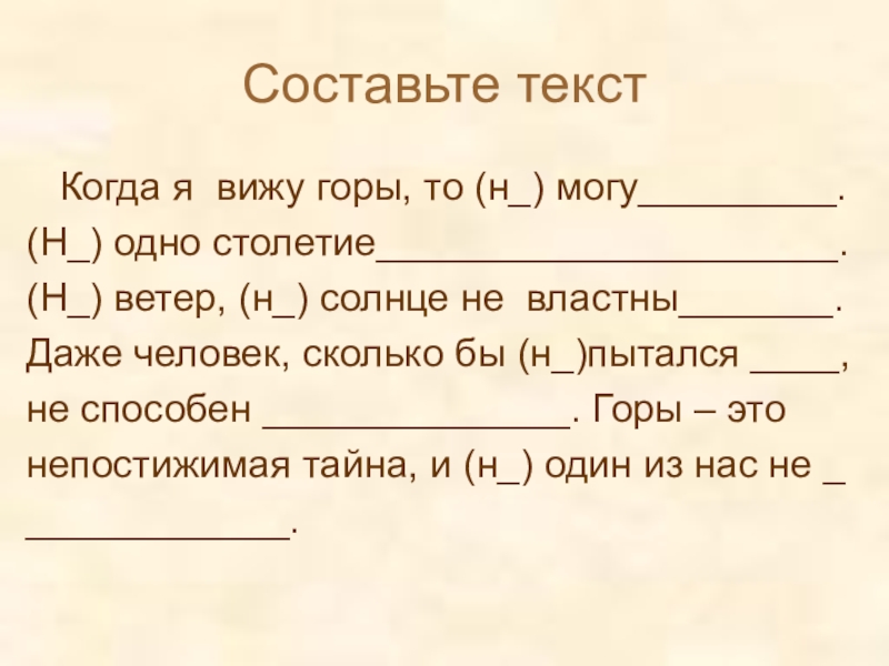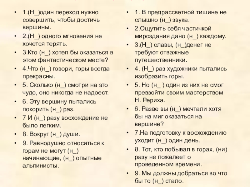 6. Разве вы (н_) мечтали хотя бы на миг оказаться на вершине?