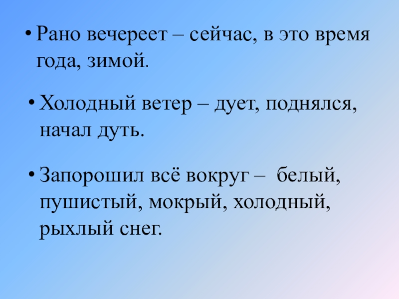 Запорошил всё вокруг – белый, пушистый, мокрый, холодный, рыхлый снег.