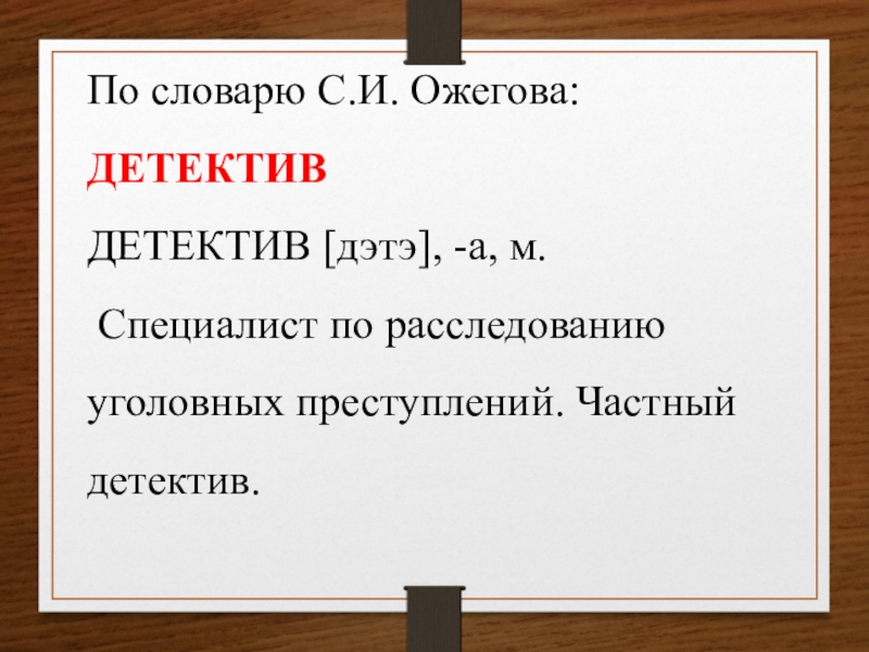 Слайд 3По словарю С.И. Ожегова: ДЕТЕКТИВ