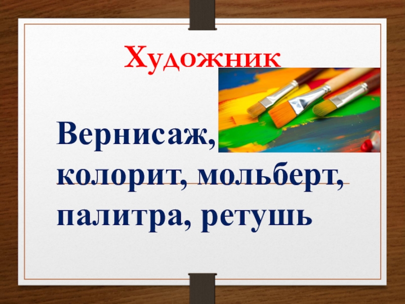 ХудожникВернисаж, колорит, мольберт, палитра, ретушь