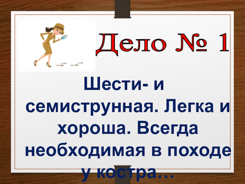 Шести- и семиструнная. Легка и хороша. Всегда необходимая в походе у костра…Дело № 1