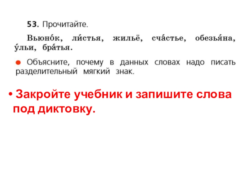 Слайд 8 Закройте учебник и запишите слова под диктовку.
