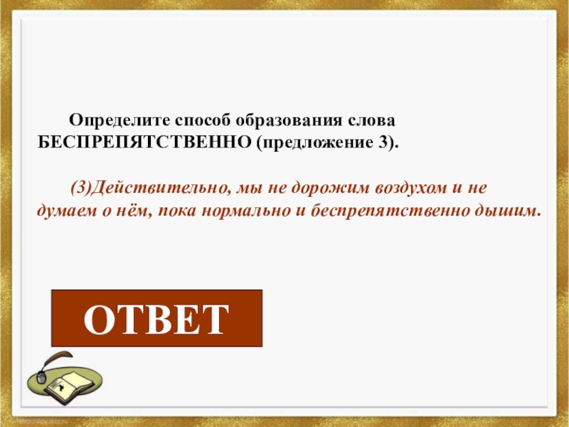 образования слова БЕСПРЕПЯТСТВЕННО (предложение 3).