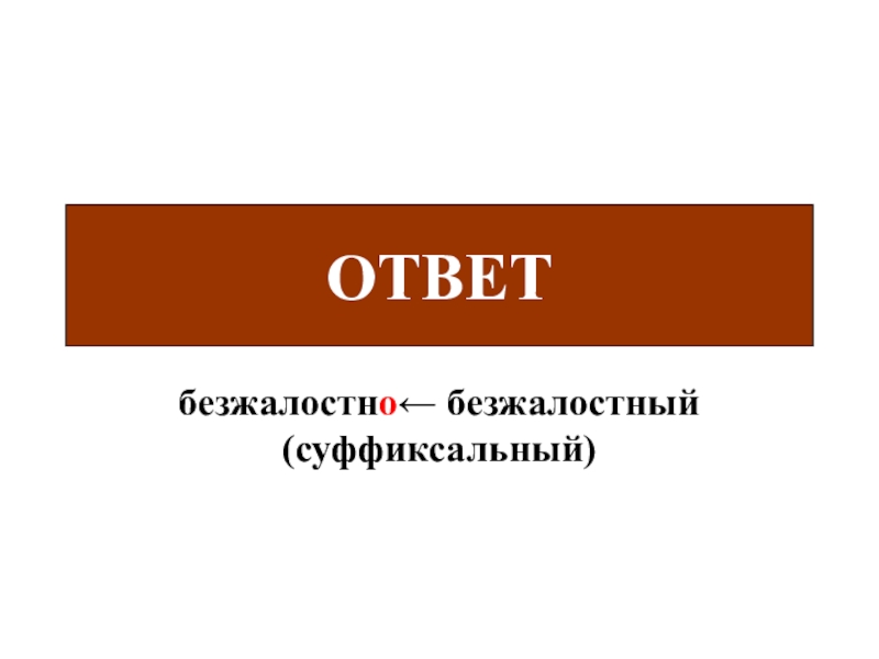 Слайд 36безжалостно← безжалостный (суффиксальный)