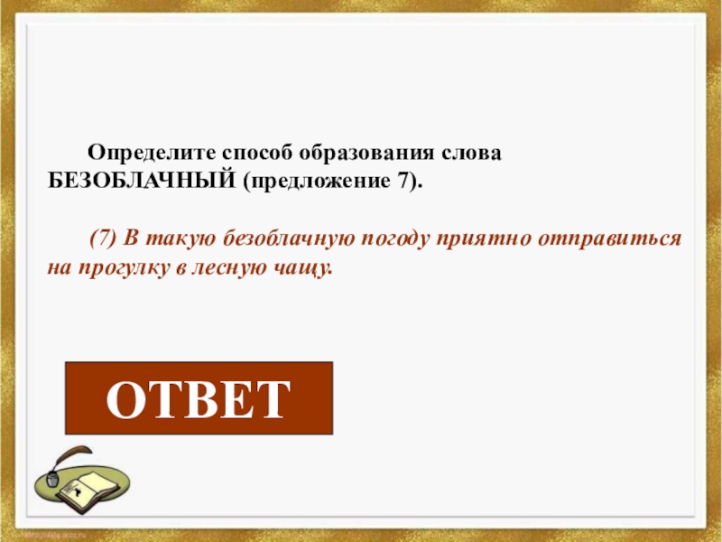 образования слова БЕЗОБЛАЧНЫЙ (предложение 7).