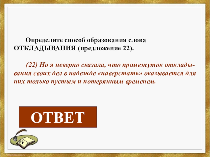 образования слова ОТКЛАДЫВАНИЯ (предложение 22).