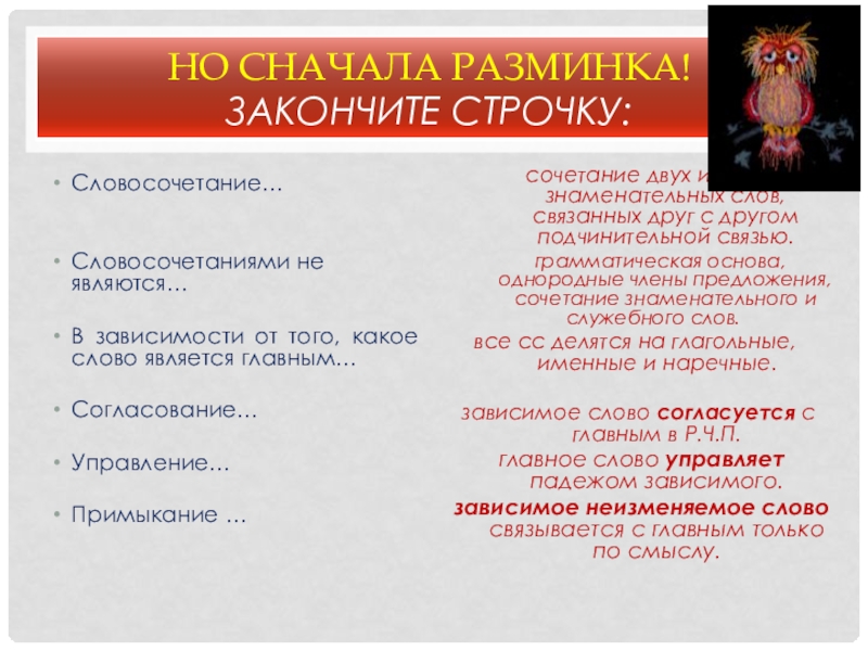 сочетание двух и более знаменательных слов, связанных друг с другом подчинительной связью.