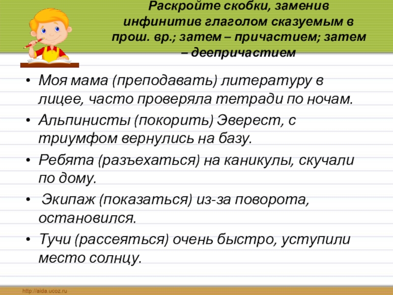 Альпинисты (покорить) Эверест, с триумфом вернулись на базу.