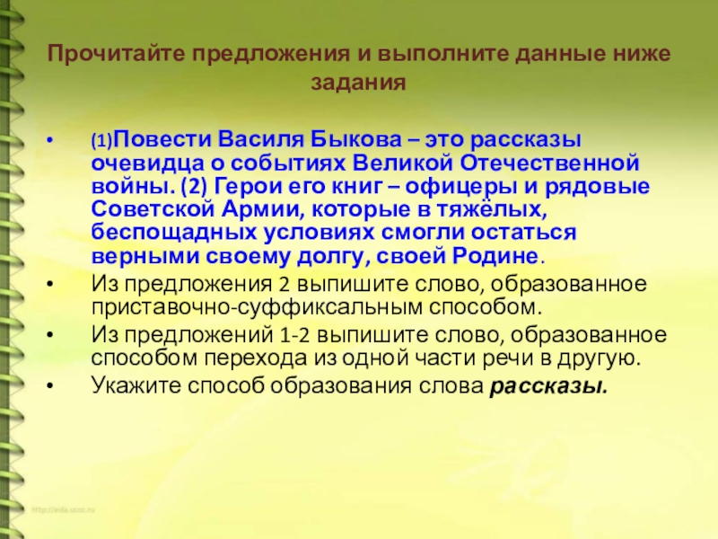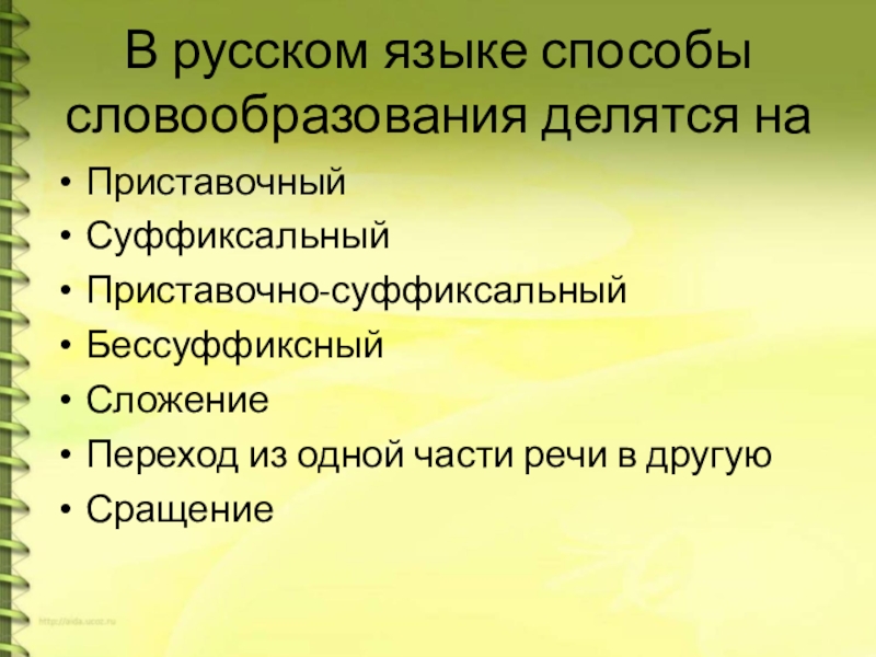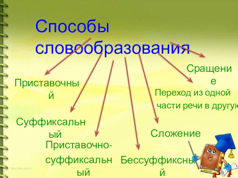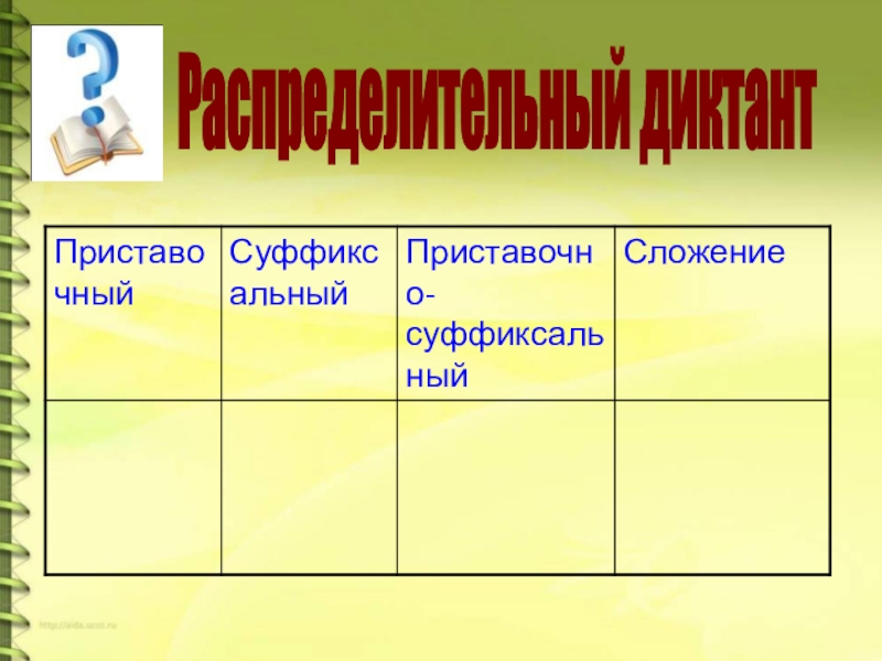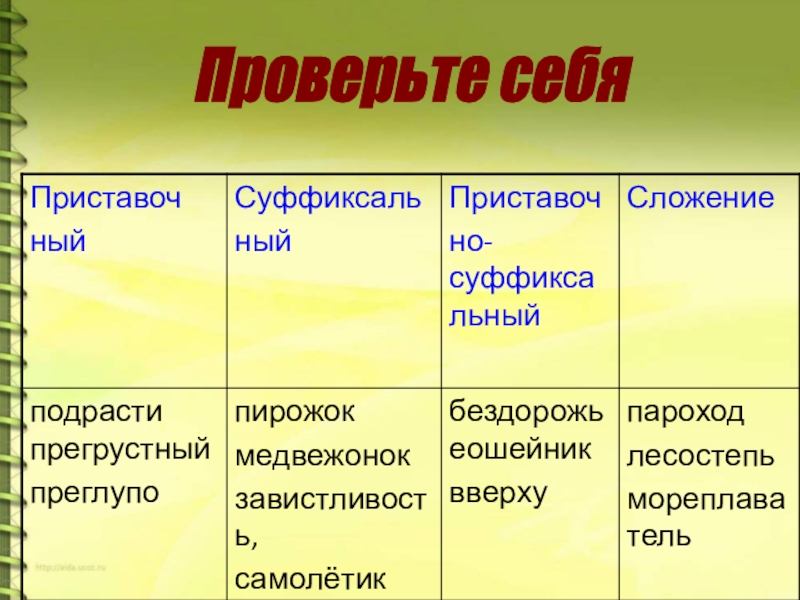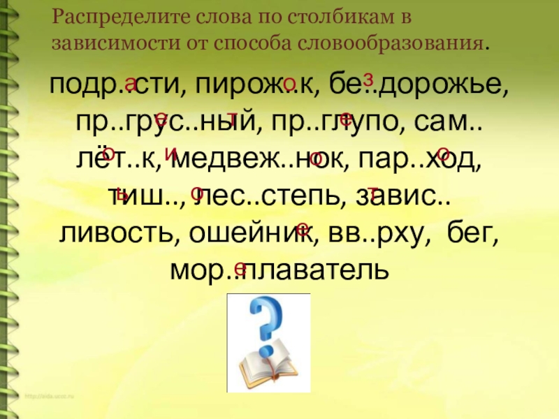 Распределите слова по столбикам в зависимости от способа словообразования.