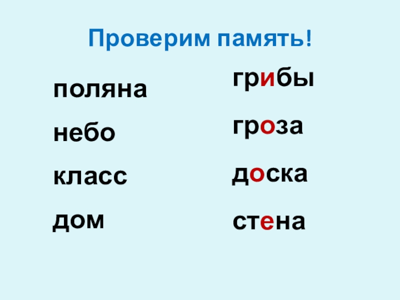 Проверим память!полянанебоклассдомгрибыгроза доска стена