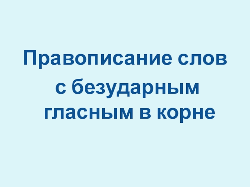 Презентация, доклад по русскому языку на тему Правописание слов с безударными гласными в корне ( 2класс)