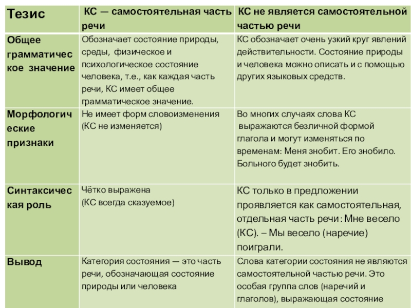 тему: «Правомерно ли выделять слова категории состояния в самостоятельную часть речи?»