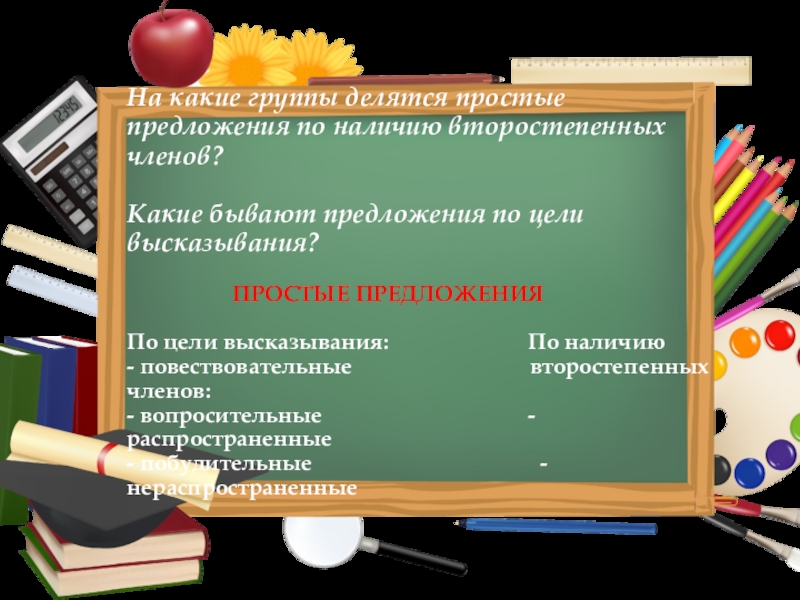 На какие группы делятся простые предложения по наличию второстепенных членов?